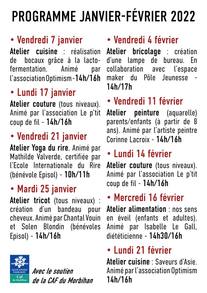 Inscriptions par téléphone au 02 97 80 14 24 ou à l’accueil d’Episol, rue Anatole France.