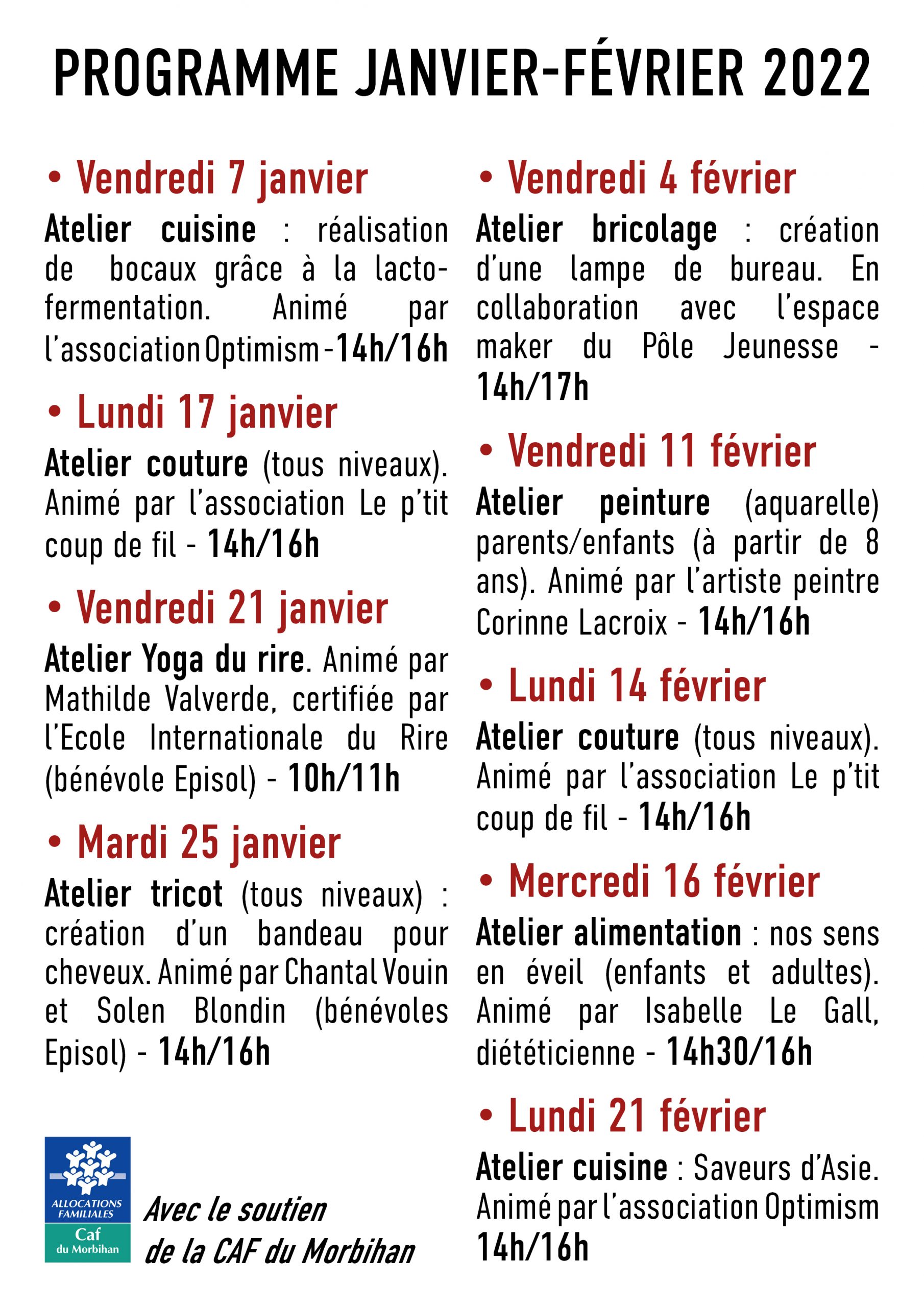 Inscriptions par téléphone au 02 97 80 14 24 ou à l’accueil d’Episol, rue Anatole France.