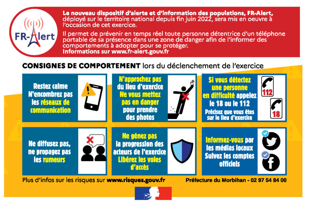 Par ailleurs, le nouveau dispositif d’alerte et d’information des populations, FR-Alert, déployé sur le territoire national depuis fin juin 2022, sera mis en œuvre à l’occasion de cet exercice. Il permet de prévenir en temps réel toute personne détentrice d’un téléphone portable de sa présence dans une zone de danger afin de l’informer des comportements à adopter pour se protéger. Pour en savoir plus : https://www.fr-alert.gouv.fr/