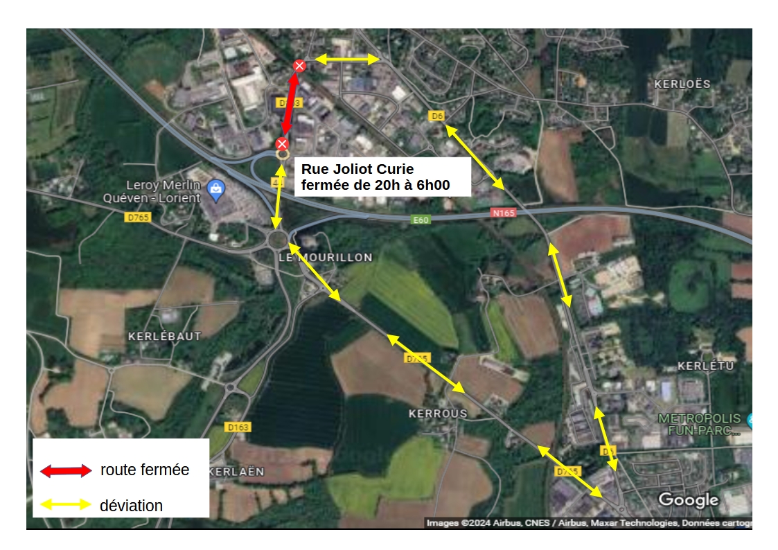 Une déviation sera mise en place chaque soir et repliée chaque matin (voir plan ci-dessous).